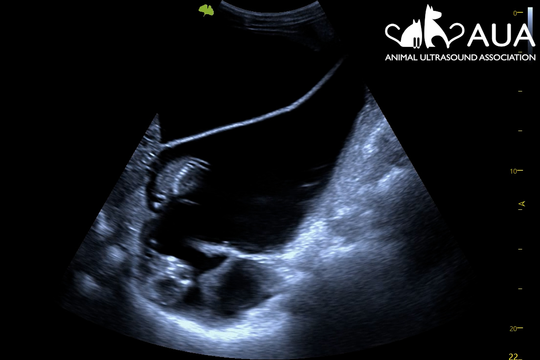 We confirmed 8 pregnancies today in Maidstone, Kent. Most of them were between 50 – 70 days, and it is surprising how tiny the foetus still is even at that stage of gestation. A human foetus at the same gestational age is about 8x larger; a feline fetus, 14x larger! Hence, when scanning you find yourself searching for a pea-sized foetus in a relatively large animal with a large, fluid-filled uterus. This involves moving your transducer along the uterine horns, and fanning back and forth, to try to spot a hiding future cria. At times, this is easier said than done, as alpacas are not always the most still and cooperative when having their abdomens touched.
