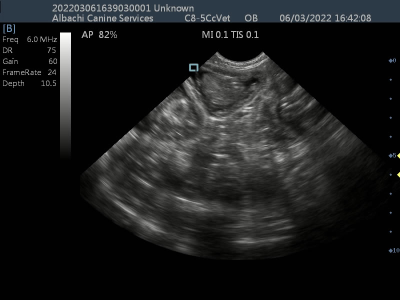 Second scan of this bitch to check development and to get some pictures and videos for the owner. Lovely scan with lots of activity and movement detected.