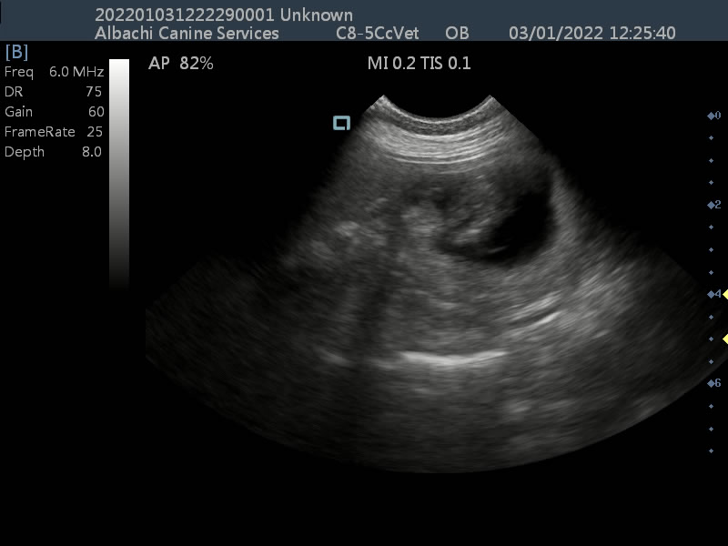 Second scan of this bitch to check development and to get some pictures and videos for the owner. Lovely scan with lots of activity and movement detected.