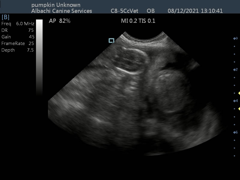 Second scan of this bitch to check development and to get some pictures and videos for the owner. Lovely scan with lots of activity and movement detected.